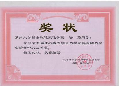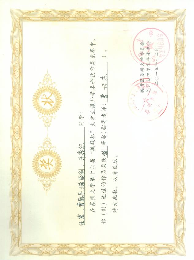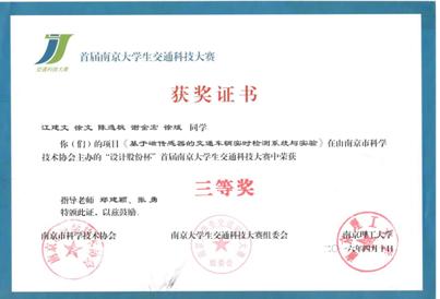 竞赛获奖类别:2016年首届南京大学生交通科技大赛交通信息工程及控制组三等奖