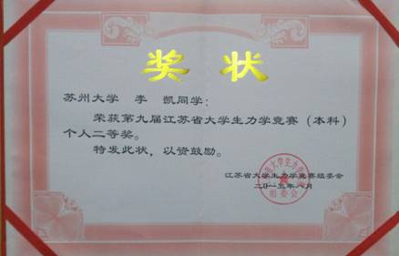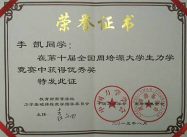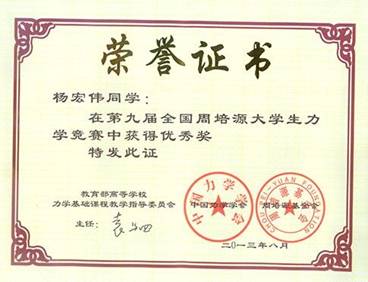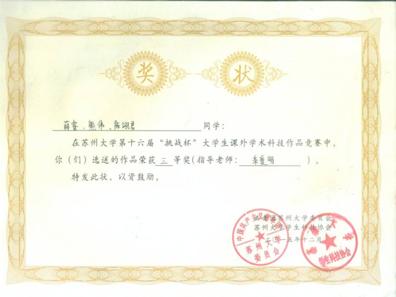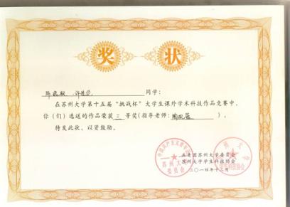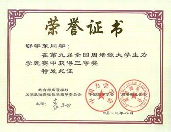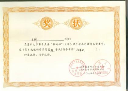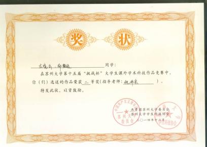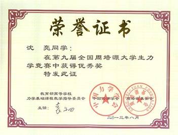 (9)“挑战杯”大学生课外学术科技作品竞赛获奖证书