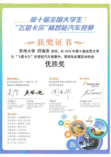 (3)飞思卡尔智能车大赛竞赛获奖证书