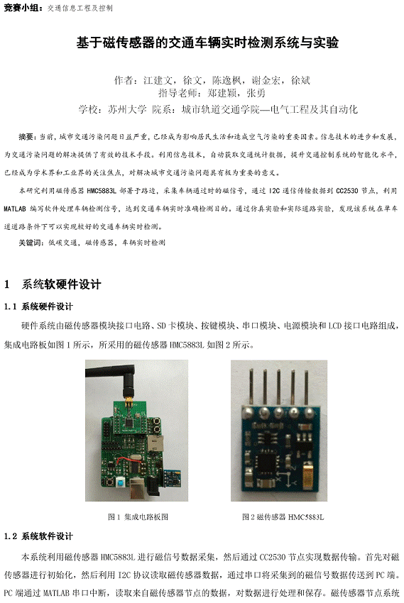 (1)基于磁传感器的交通车辆实时检测系统与实验