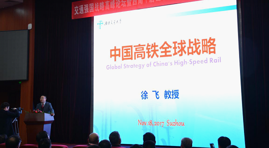 11月18日,由西南交通大学主办,苏州大学轨道交通学院、西南交通大学苏州校友会共同承办的“交通强国战略—交通发展的新机遇”高峰论坛在我校阳澄湖校区举行。