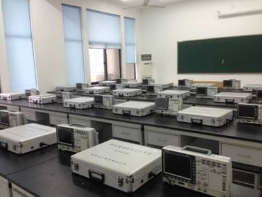 位于机械楼221、313室,内配有常用电子仪器4套(含GPS3303C多路直流稳压电源、GDS1102A数字存储示波器、SFG2020型DDS信号发生器、GFC8131H通用智能频率计、台式万用表等),供学生科研课题使用。