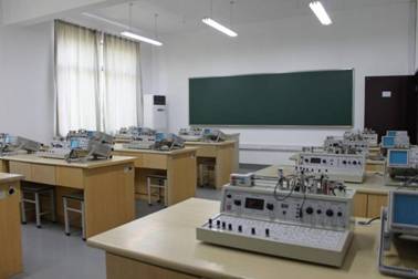 位于建工楼216室,内有20台套设备。装置配件有西门子S7-200系列PLC、DELTA公司的VFD-S系列变频器、施耐德公司的继电器、断路器、发电机、电动机和PC机等。可开设“三相异步电动机接触器自锁控制线路”、“三相异步电动机接触器互锁的正反转控制线路”等十四个专业实验。